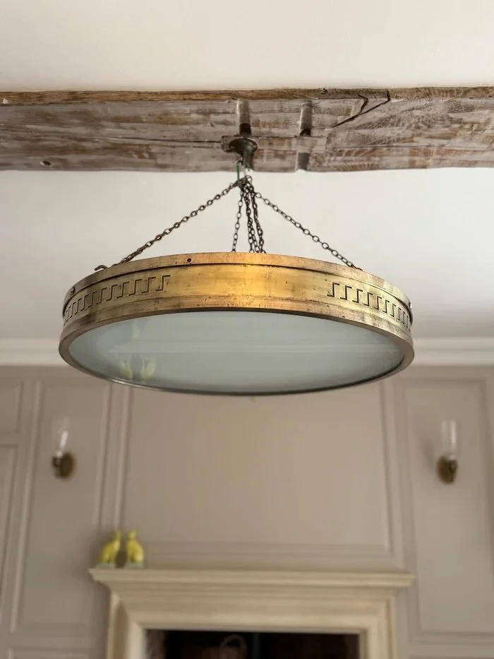 A striking pair of brass plafonniers, originally installed in the historic Lewis Building in Liverpool. Generous in scale and beautifully detailed, they’ve been fully restored with new internal fittings, rewired, PAT tested and made ready for modern use. Each light is accompanied by a domed plastic diffuser, offering a soft, even glow. Handsome, architectural and full of provenance, a wonderful way to bring a touch of heritage into a contemporary setting.